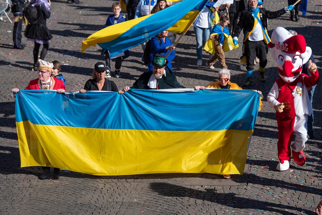 Allein mit dieser Solidaritätsaktion zeigte sich der närrische Lindwurm in der Landeshauptstadt als der wohl politischste Rosenmontagszug in Deutschland. Bis über die Schamgrenze hinausgehend zeigte sich die Offenheit der Jeckenspitze und die Freiheit, die sich ein Künstler nehmen darf – und nehmen muss. Im Kreml, im Weißen Haus und in einem Nebengebäude am Platz des Himmlischen Friedens in Peking zogen bestimmt Gewitterwolken vor der Stirn der drei Despoten auf, als sie mit ihrem kleinen „Despötchen“ nackt vor die Weltöffentlichkeit treten mussten. Beeindruckend war zudem die Parallele zum Hitler-Stalin-Pakt von 1939, den Tilly herausarbeitete – mit dem Polen geopfert wurde und in deren Rolle sich nun die Ukraine befindet. „Das ist auch mein Lieblingswagen“, sagte er nach dem Defilee des jecken Lindwurms.
