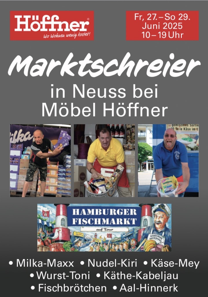 Neuss ver­wan­delt sich vom 27. bis 29. Juni 2025 in ein nord­deut­sches Erleb­nis­zen­trum der beson­de­ren Art: Unter dem Motto „Die Nord- und Ost­see zu Gast im Rhein­land“ gas­tie­ren die bekann­tes­ten Markt­schreier Deutsch­lands in der Stadt und brin­gen mari­ti­mes Flair sowie kuli­na­ri­sche Viel­falt mit.