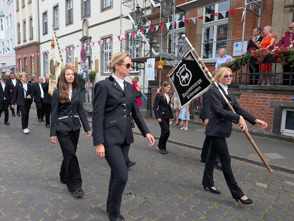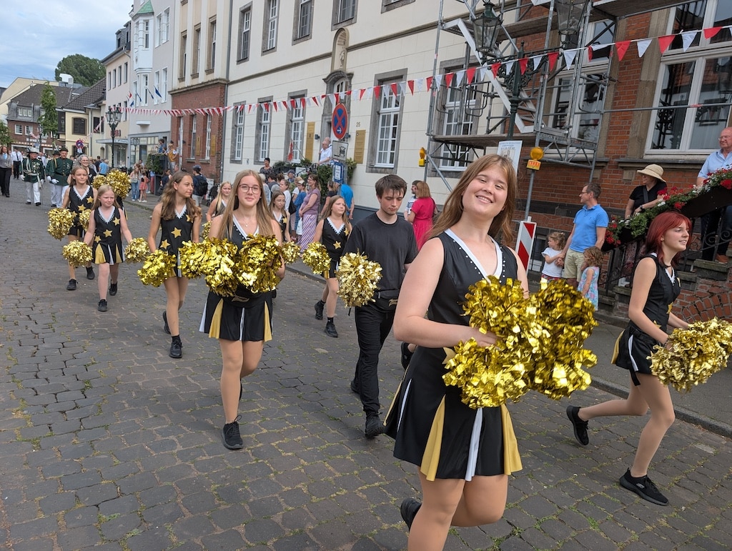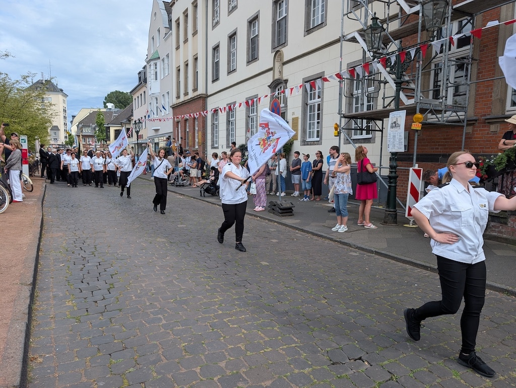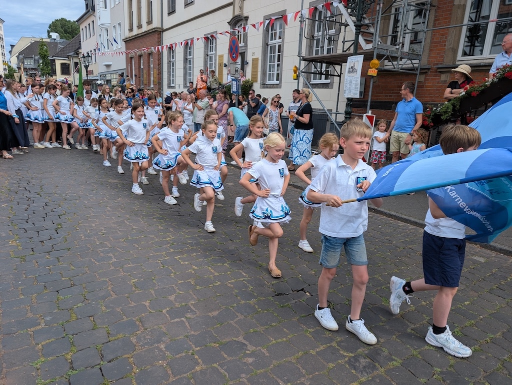 Die Tanz­gar­den bezau­ber­ten das Publi­kum, die Fah­nen­schwen­ker aus Lohau­sen beein­druck­ten, die Tam­bour­corps aus Kal­kum, Witt­laer und Kai­sers­werth sorg­ten für gute Stim­mung im Ort.