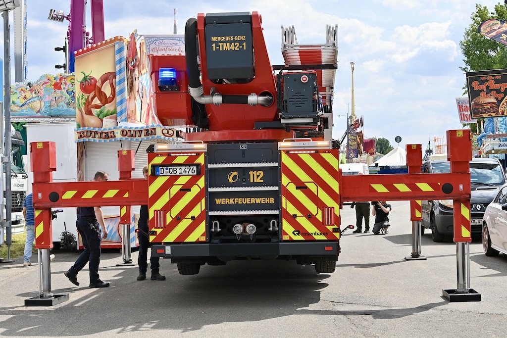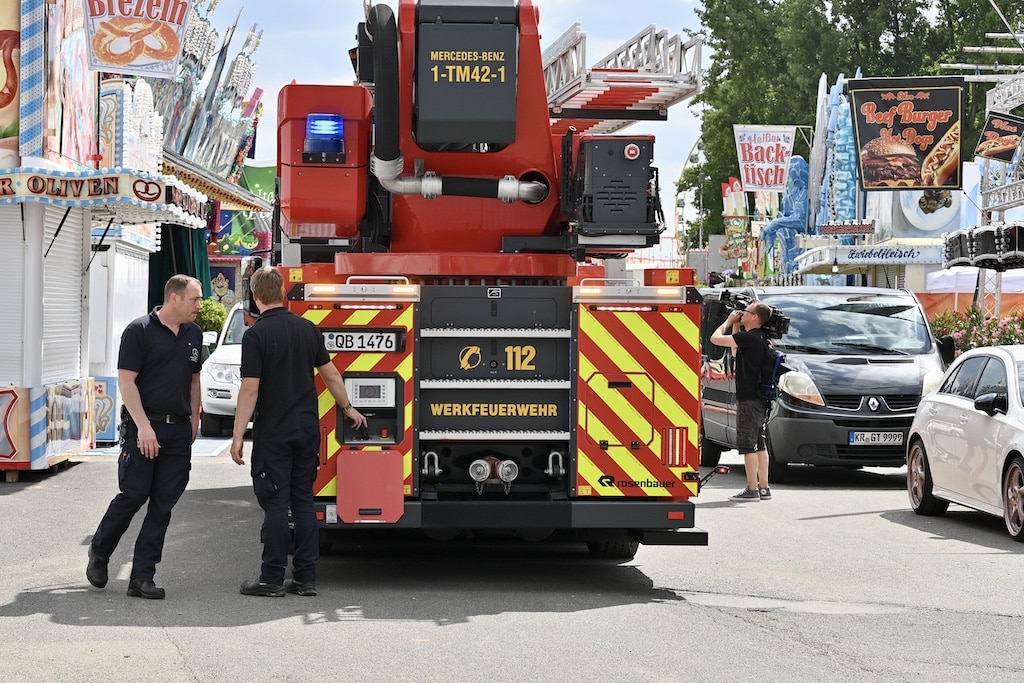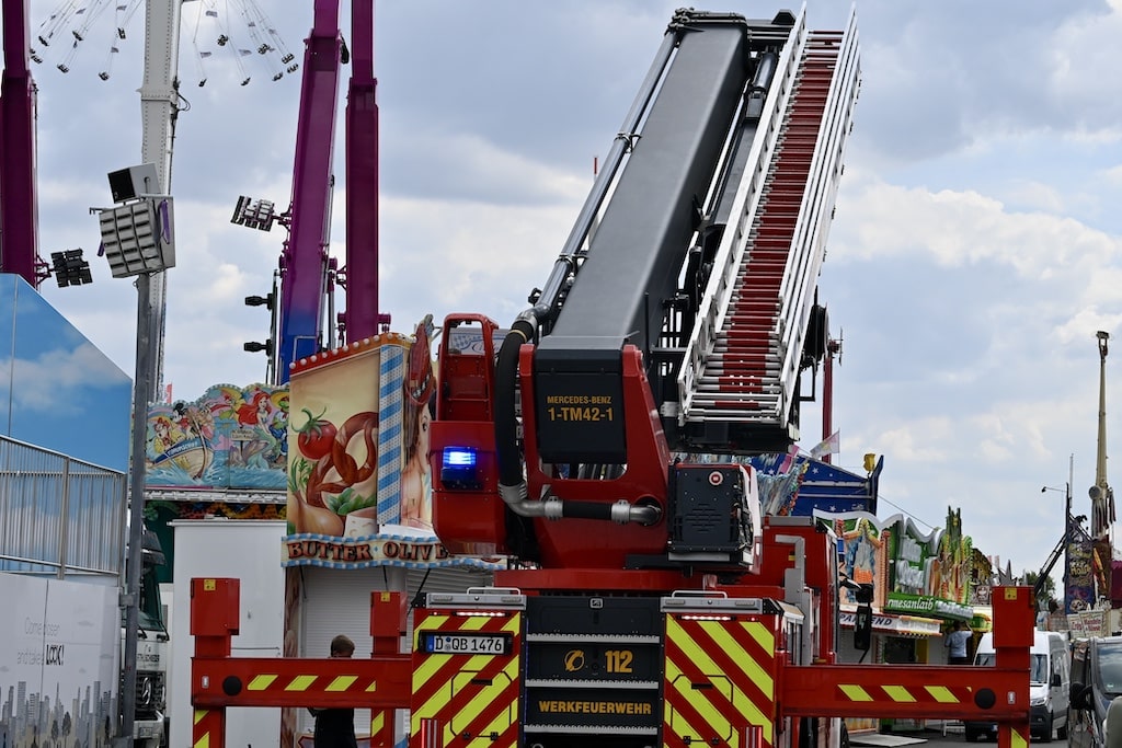 Im Hin­ter­grund sor­gen prä­zise vor­be­rei­tete Pläne dafür, dass Ein­satz­kräfte im Not­fall zügig und gezielt han­deln kön­nen. Jedes Fahr­ge­schäft ist regis­triert und beschil­dert, sodass bei einem Not­ruf der genaue Ort sofort iden­ti­fi­ziert wer­den kann. Eine Ring­straße rund um das Fest­ge­lände ermög­licht schnelle Anfahrts­wege für Ret­tungs­dienste – ohne sich durch Men­schen­men­gen zwän­gen zu müs­sen. Sollte es den­noch erfor­der­lich sein, dass Fahr­zeuge durch die Besu­cher­mas­sen fah­ren müs­sen, wird der Weg durch Ord­nungs­kräfte gesichert.