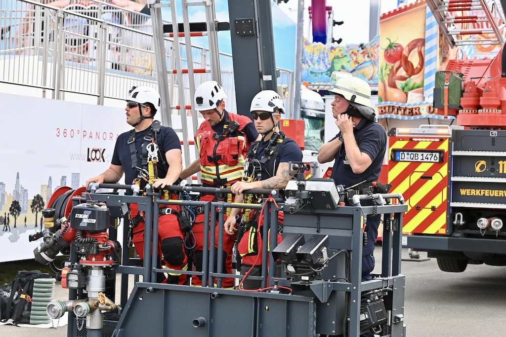 Mit dem Start der Rhein­kir­mes auf den Ober­kas­se­ler Rhein­wie­sen beginnt für die Feu­er­wehr Düs­sel­dorf eine beson­ders arbeits­in­ten­sive Zeit. Wäh­rend sich die Besu­cher auf Fahr­ge­schäfte, Fest­zelte und die beson­dere Atmo­sphäre freuen, läuft im Hin­ter­grund ein aus­ge­klü­gel­tes Sicher­heits­kon­zept an. Denn dort, wo zehn Tage lang der Aus­nah­me­zu­stand herrscht, braucht es mehr als gute Stim­mung – es braucht auch Vor­be­rei­tung, Orga­ni­sa­tion und schnelle Reaktionsfähigkeit.