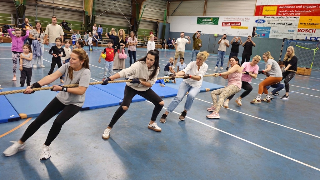 Der Höhe­punkt war das 1. Tau­zie­hen des TVA, bei dem zunächst die Hand­ball- und Fuß­ball­teams gegen­ein­an­der antraten.