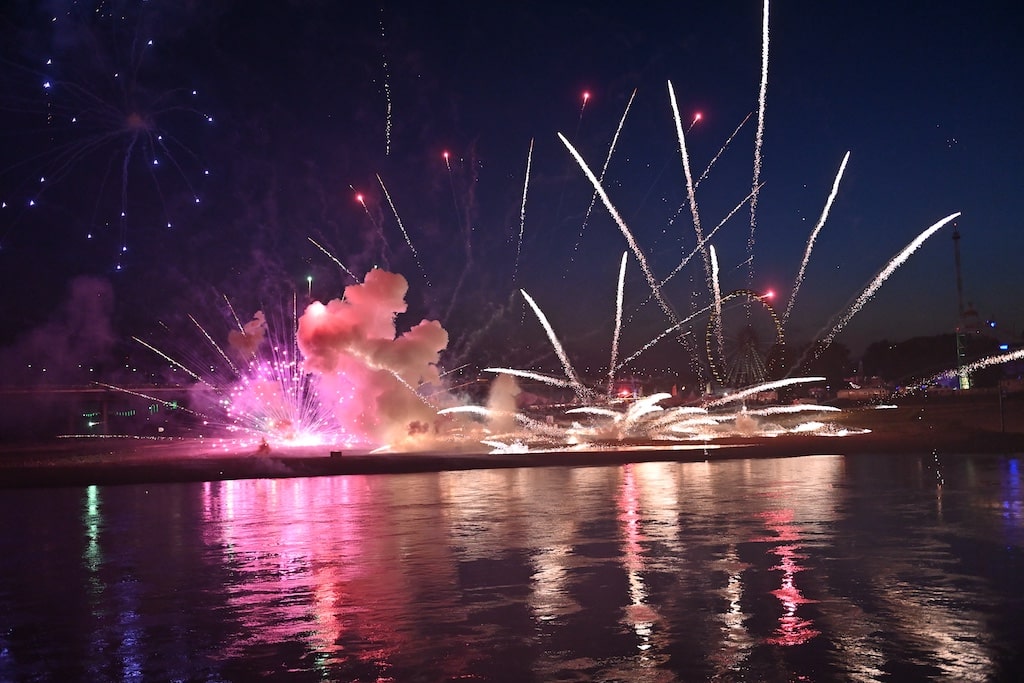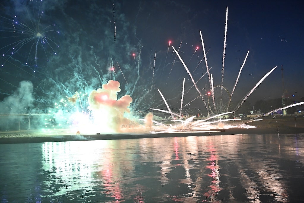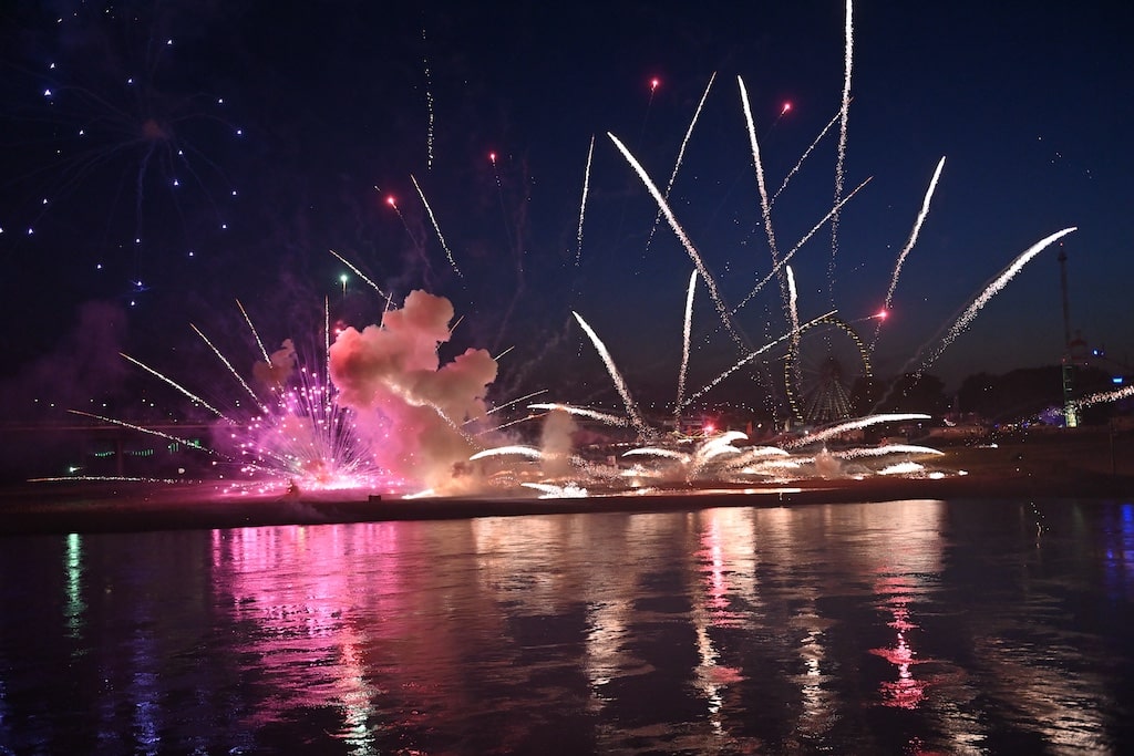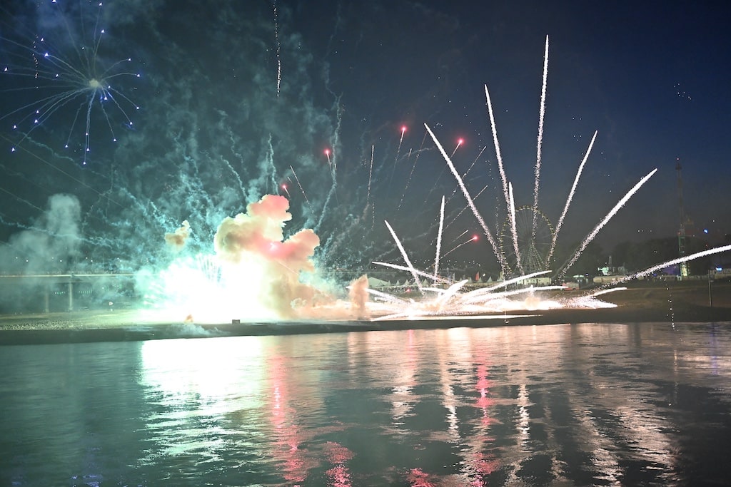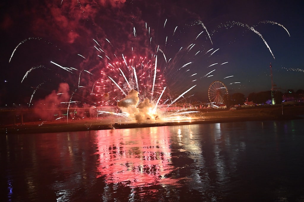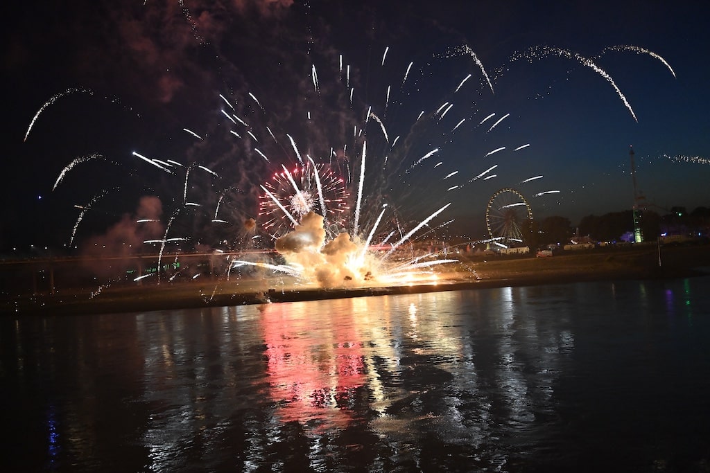 Hinweis: Die Rheinkirmes gilt mit jährlich über vier Millionen Besuchern als eines der größten Volksfeste Deutschlands. Das Abschlussfeuerwerk bildet traditionell den Höhepunkt der Veranstaltung.
