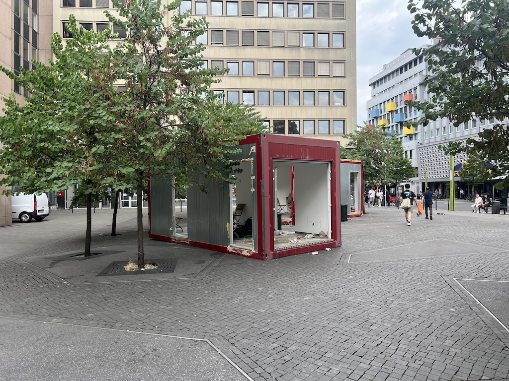 Doch was dann am Freitag folgte, war fast ein schlechter Witz: Die alten Container wurden entfernt – und durch zwei neue ersetzt, die kaum anders aussehen. Der „Komfort“ besteht aus ein paar hineingestellten Stühlen, dazu wurden Fensteröffnungen ausgeschnitten. Das war’s.