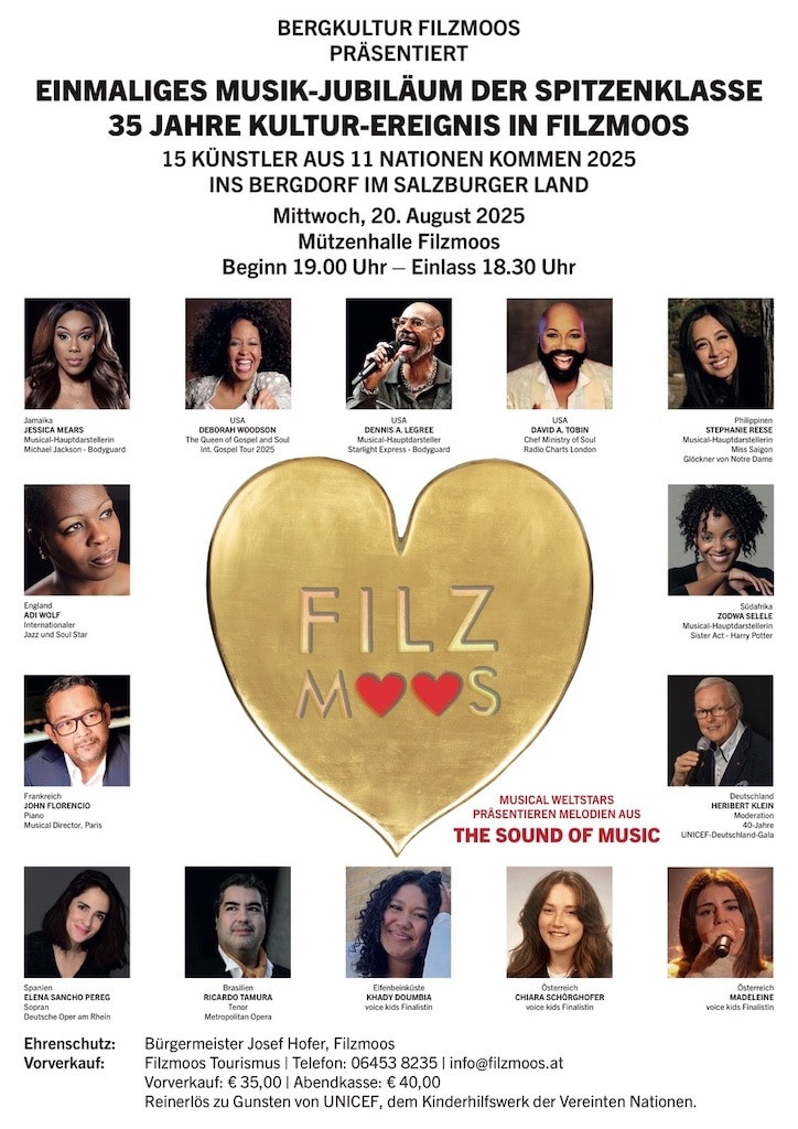 „Das ist einmalig – 35 Jahre präsentiert er das Musikereignis mit internationalen Stars der weltweiten UNICEF-Familie aus Musical, Oper, Jazz, Soul, Instrumental und seit 8 Jahren neben den großen Stars auch mit Super-Talenten der Finalisten der TV-Voice-Kids-Sendung aus Europa“, schwärmt Tourismus-Chef Peter Donabauer, der mit der Veranstaltung ein Alleinstellungsmerkmal im Salzburger Land innehat.