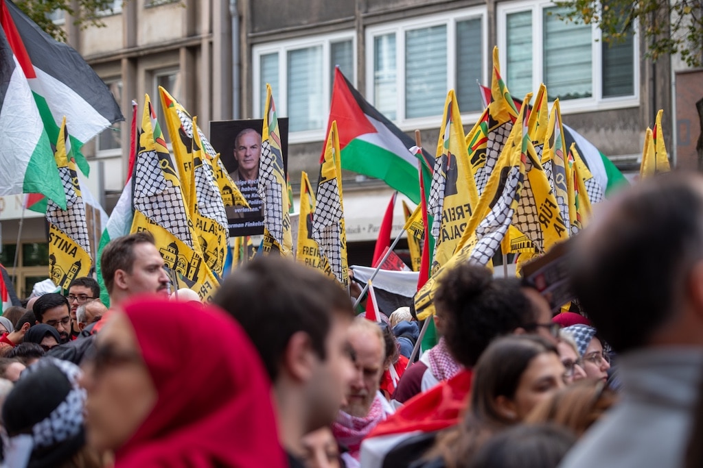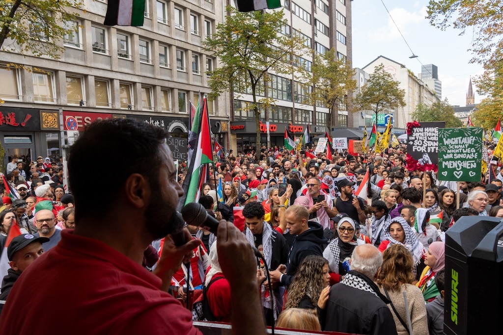 Am Sams­tag ver­sam­mel­ten sich meh­rere Tau­send Men­schen in der Düs­sel­dor­fer Innen­stadt zu einer Pro-Paläs­tina-Demons­tra­tion. Der Pro­test­marsch star­tete plan­mä­ßig um 14 Uhr am Kon­rad-Ade­nauer-Platz und führte anschlie­ßend über die Fried­rich-Ebert-Straße, die Scha­dow­straße und die Jaco­bi­straße bis hin zum Scha­dow­platz. Am frü­hen Abend war die Ver­an­stal­tung been­det. Nach Anga­ben der Poli­zei blieb es über­wie­gend friedlich.