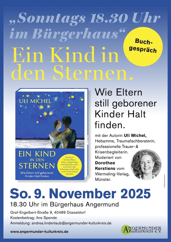 „Ein Kind in den Sternen. Wie Eltern still geborener Kinder Halt finden“ – so lautet der Titel eines Buches, das Heba me Uli Michel am 9. November um 18.30 Uhr im Bürgerhaus Angermund vorstellt.