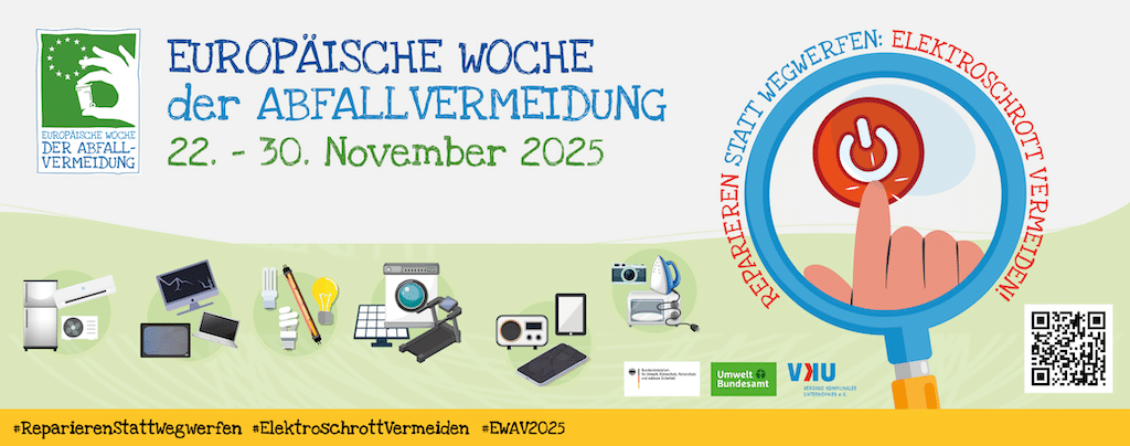 Die Europäische Woche der Abfallvermeidung findet 2025 vom 22. bis 30. November statt und steht unter dem Motto „Reparieren statt Wegwerfen: Elektroschrott vermeiden“. Düsseldorf beginnt bereits am 19. November. Ziel der Aktionswoche ist es, die Lebensdauer elektronischer Geräte durch Reparatur, Wiederverwendung und bewussten Konsum zu verlängern. Veranstaltet wird die Reihe von der Abfallberatung der AWISTA Kommunal GmbH und der Umweltberatung der Verbraucherzentrale Düsseldorf in Zusammenarbeit mit der Landeshauptstadt.