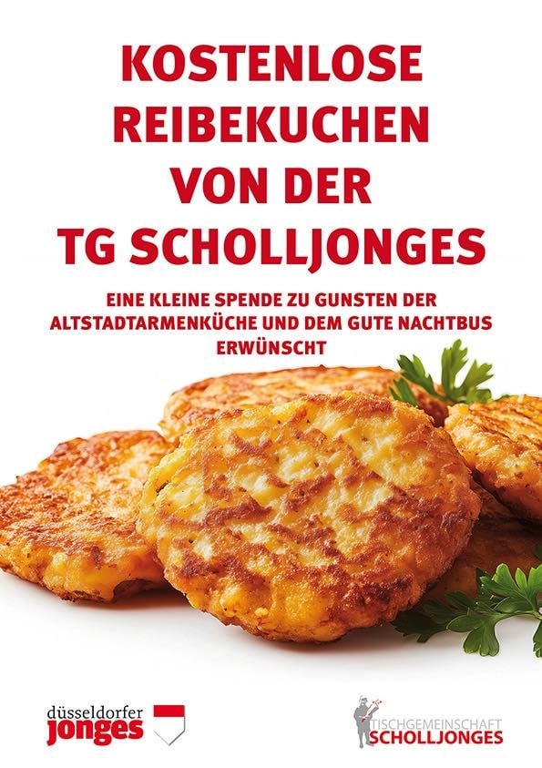 Am Freitag, 28. November 2025, laden die Scholljonges ab 10 Uhr zu „Reibekuchen für alle“ auf die Terrasse der Kostbar an der Neustraße ein. Die Ausgabe ist kostenfrei, Spenden werden angenommen. Unterstützt werden die Altstadt-Armenküche sowie der Gute-Nacht-Bus.