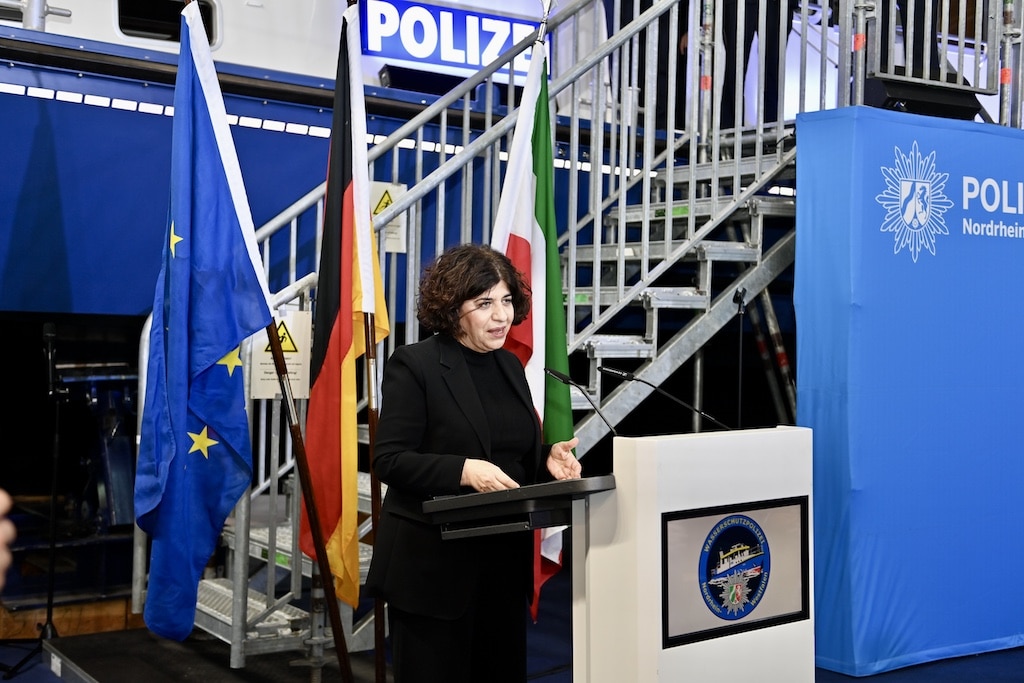 Innenminister Herbert Reul, der Duisburger Polizeipräsident Alexander Dierselhuis sowie die Taufpatin, die Vizepräsidentin des nordrhein-westfälischen Landtags Berivan Aymaz, würdigten in ihren Ansprachen die Bedeutung moderner Einsatzmittel für die Sicherheit auf den Wasserstraßen. Reul verwies dabei auf einen einsatzintensiven Sommer mit zahlreichen Badeunfällen und schweren Unglücken auf dem Rhein. Eine leistungsfähige und zeitgemäße Flotte sei unverzichtbar, um Rettung, Prävention und Gefahrenabwehr zuverlässig gewährleisten zu können.
