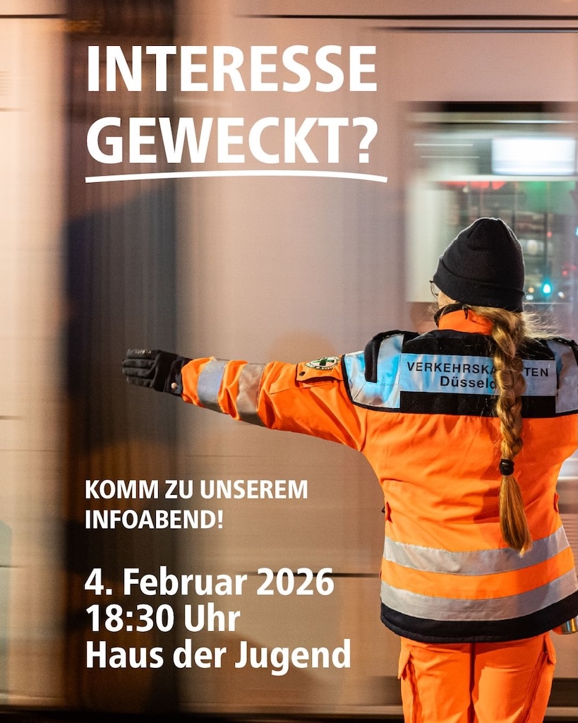 Die eigentliche Ausbildung beginnt mit einem gemeinsamen Schulungswochenende vom 20. bis 22. Februar 2026. Interessierte Jugendliche können sich bereits jetzt informieren und Kontakt aufnehmen. Weitere Informationen gibt es telefonisch unter 0211 69 54 76 33, per E‑Mail an ausbildung@vkd.de oder online auf der Internetseite der Verkehrskadetten Düsseldorf.