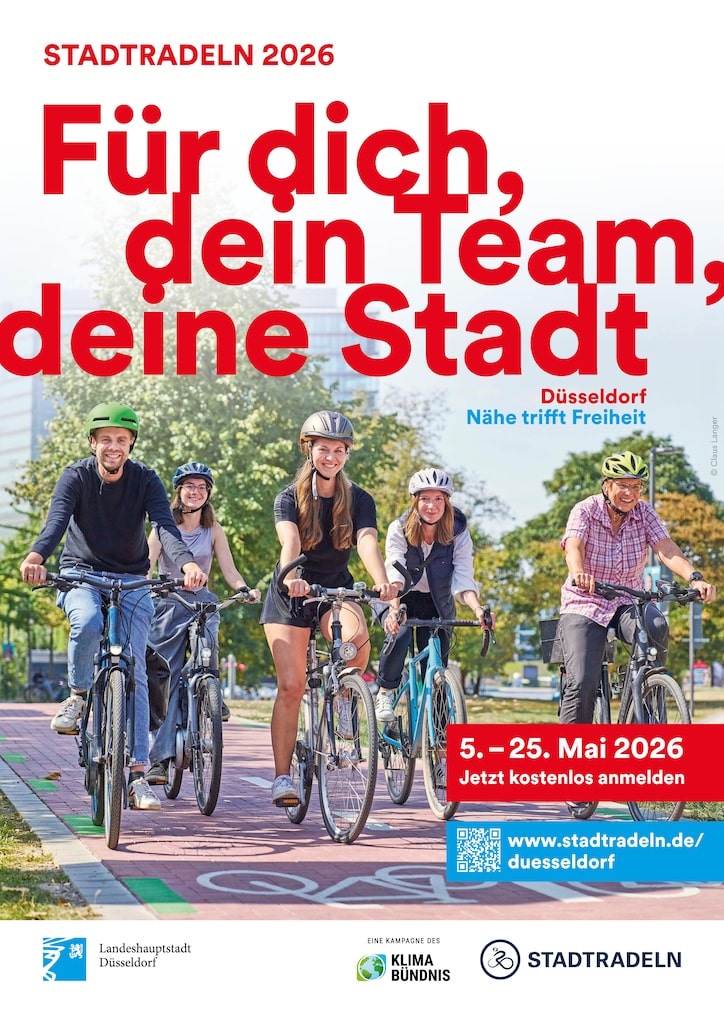 Die Lan­des­haupt­stadt ruft erneut zum Mit­ma­chen auf: Vom 5. Mai bis zum 25. Mai 2026 fin­det das Stadt­ra­deln in Düs­sel­dorf statt. Bereits zum 13. Mal sind Bür­ger dazu ein­ge­la­den, mög­lichst viele Kilo­me­ter mit dem Fahr­rad zurück­zu­le­gen und diese online zu erfas­sen. Die Anmel­dung ist ab sofort kos­ten­los mög­lich. Teil­neh­mer kön­nen sich einem bestehen­den Team anschlie­ßen oder ein eige­nes gründen.