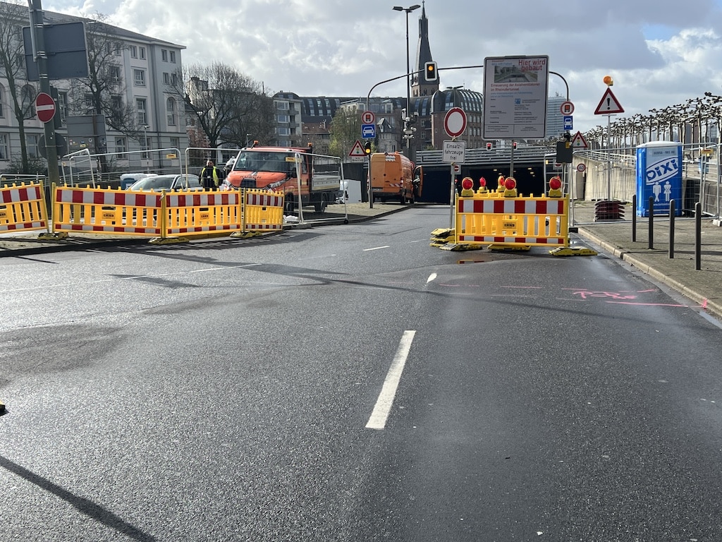 Seite heute gesperrt der Rhein­ufer­tun­nel © Lokalbüro
