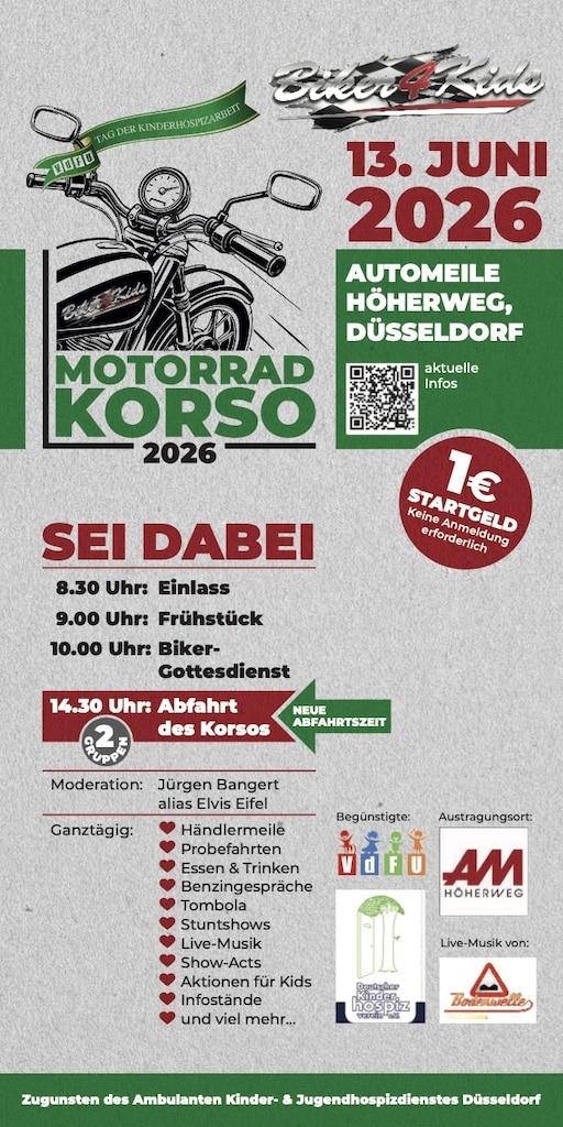 Was vor fast zwei Jahrzehnten als kleine Initiative begann, ist heute eine feste Größe in der deutschen Motorradszene: Die Biker4Kids aus Düsseldorf engagieren sich seit 2007 für den Ambulanter Kinder- und Jugendhospizdienst Düsseldorf – und haben dabei eine beeindruckende Entwicklung hingelegt.