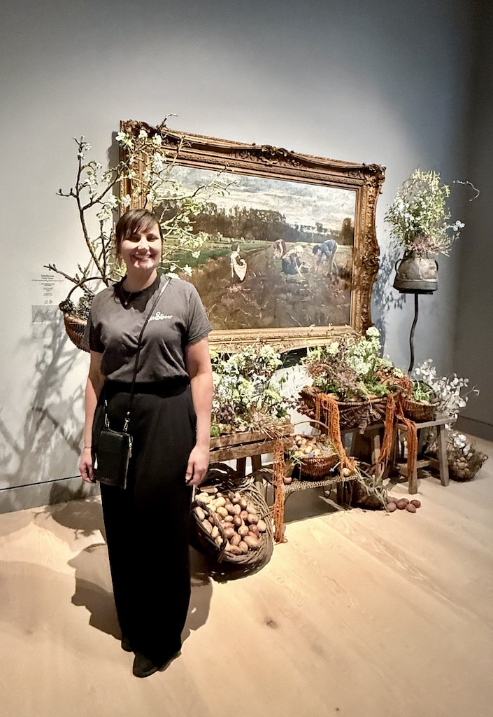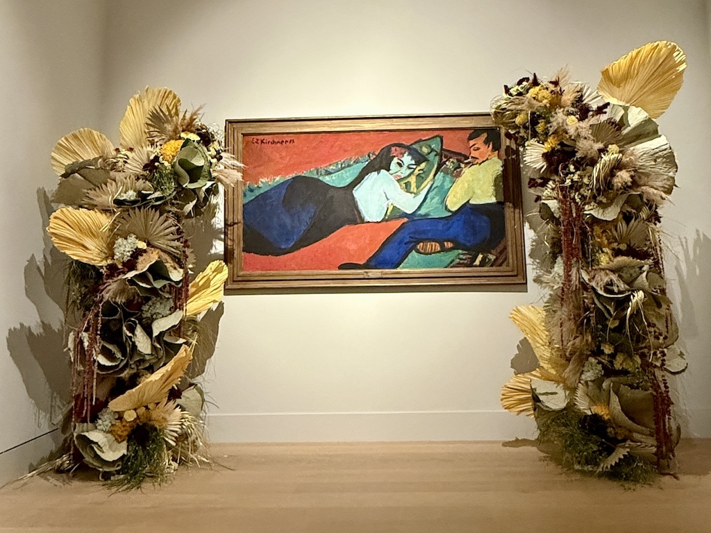Ein Beispiel ist Max Liebermanns „Kartoffelfeld“. „Dieses Gemälde hat mich sofort angezogen“, erzählt Janina Rüger von Blüten & Meer. Hellblau, Creme, Brauntöne – alles, was sich im Bild widerspiegelt, habe sie farblich aufgegriffen, weil es sich „blumig sehr gut umsetzen ließ“.