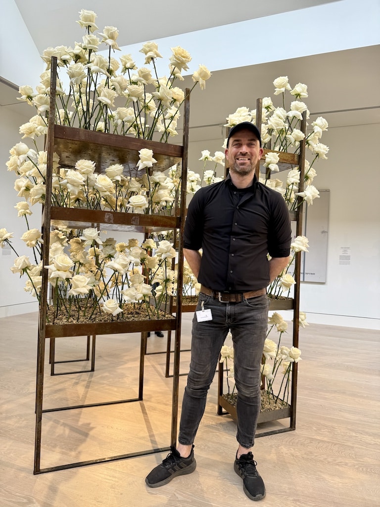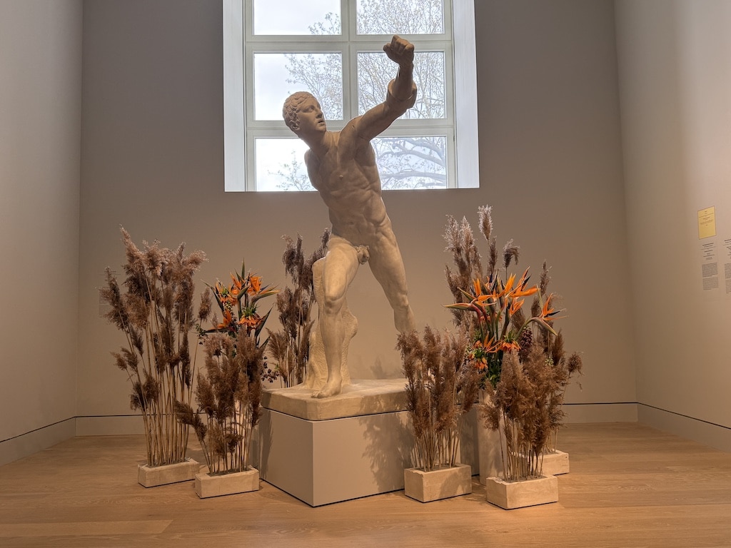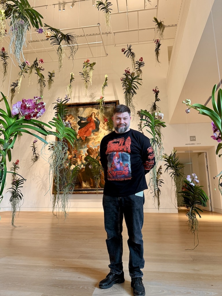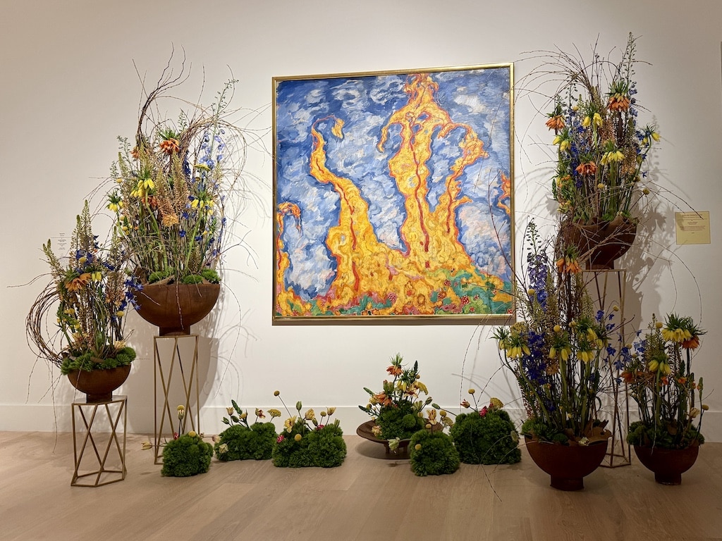 Der Kunstpalast macht es möglich – ebenso wie die schwebenden Orchideen, kreiert von Timo Hoogterp vom Blumenhaus am Hofgarten. Warum gerade dieser Raum? Für ihn sei es der größte und imposanteste Raum der Sammlung, der jedoch bislang nie vollständig genutzt wurde. „Deswegen wollte ich ihn mit Blüten füllen.“