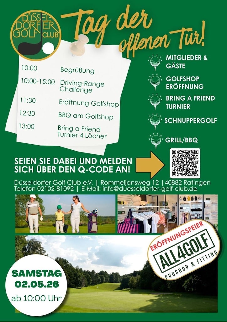 Mit dem Tag der offe­nen Tür will der Club zei­gen, dass Golf längst kein eli­tä­rer Sport mehr ist. Statt­des­sen setzt man auf Offen­heit, Gemein­schaft und einen ein­fa­chen Ein­stieg. Wei­tere Infor­ma­tio­nen und Anmel­dung sind online unter www.duesseldorfer-golf-club.de möglich.