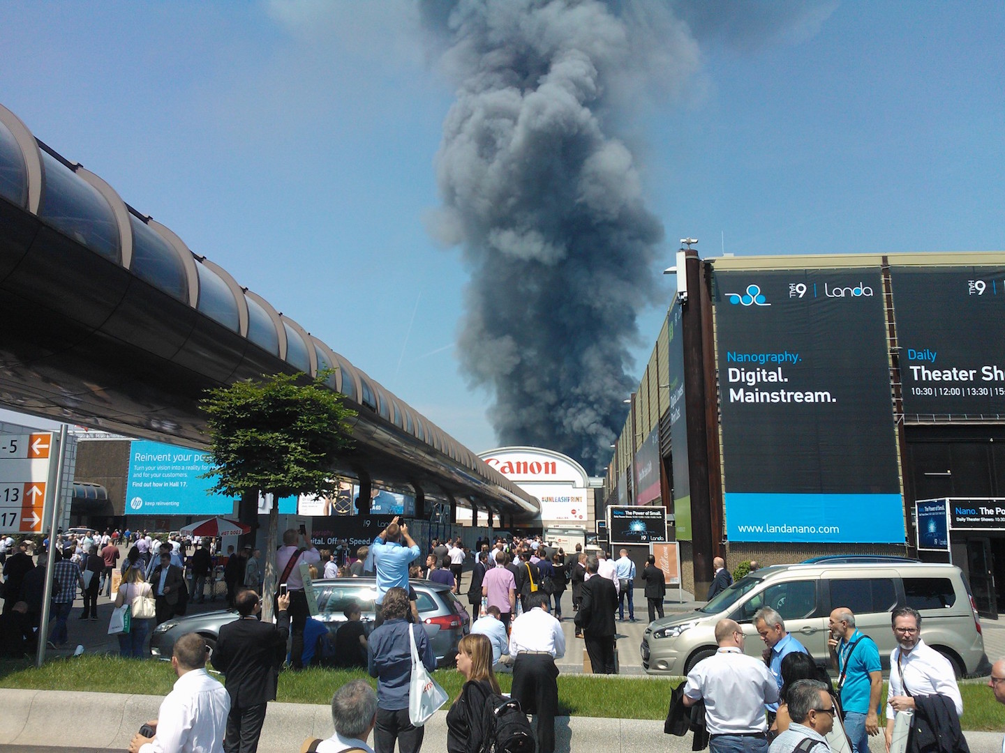 Die Halle 18 wurde als Flüchtlingsunterkunft für 282 alleinreisende Männer untergebracht. 130 Männer waren zum Zeitpunkt das Brandes anwesend, 28 erlitten eine Rauchgasvergiftungen und mussten behandelt werden. Ein Feuerwehrmann und ein DRK Helfer verletzten sich leicht. Die Feuerwehr warnte vor der riesigen Rauchwolke, die über ganz Düsseldorf zu sehen war.