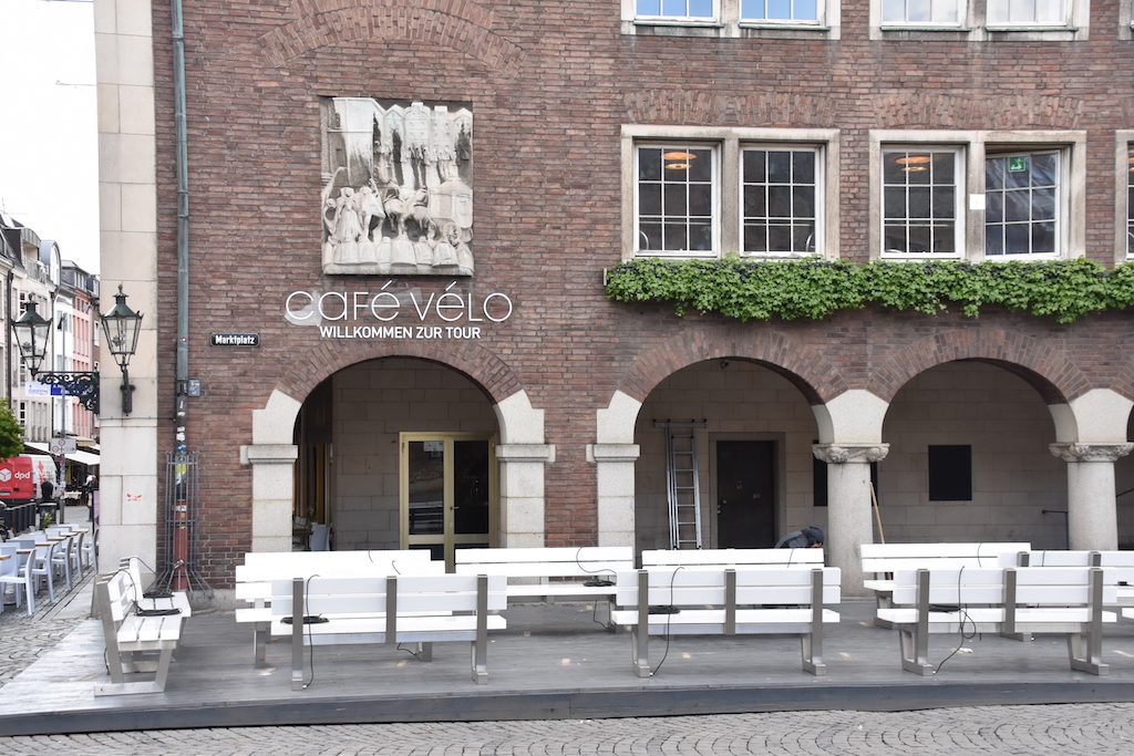 Aufgebaut wurden sie etwa zwei Wochen vor Karneval. Doch schnell wurde es wieder dunkel vor dem „Café Velo“, zu Karneval sind sie gleich wieder verschwunden. Aber nicht lange, Aschermittwoch tauchten die Sitzgelegenheiten dann wieder auf.