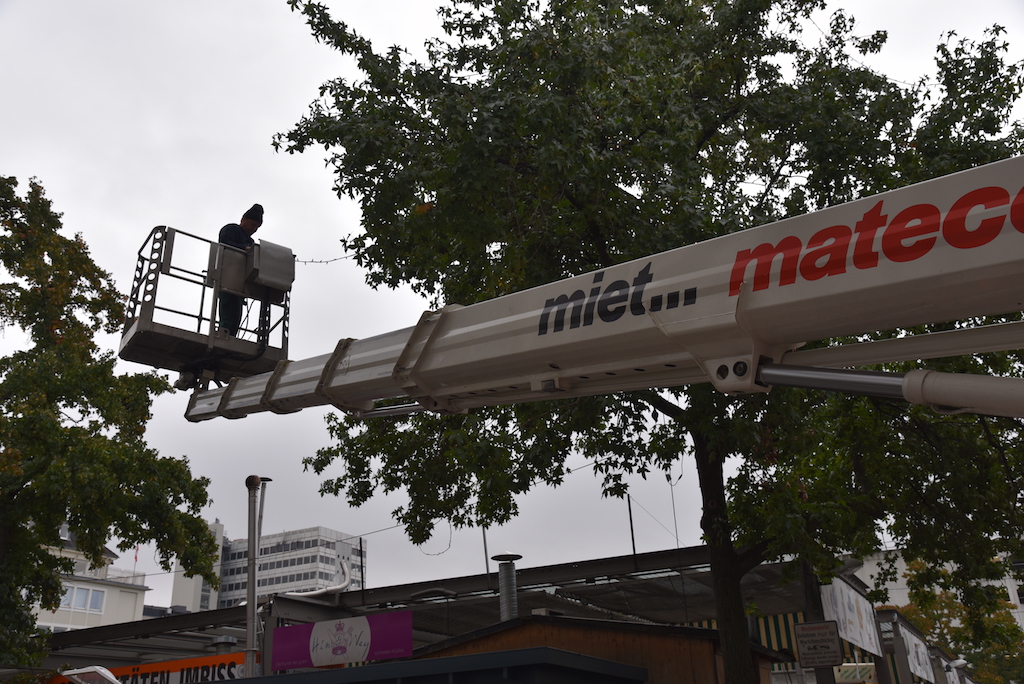 Obwohl die Bäume noch voller Laub sind, wurden heute in der Altstadt rund um den Carlsplatz die ersten Lichterketten angebracht. Da es ja noch reichlich früh ist und es mit dem Anschalten der Lichterkette noch was dauert, muss ja irgendwo angefangen werden. Das Anbringen aller Lichterketten und Winterbeleuchtung dauert allein in unserem Düsseldorf knapp 1,5 Monate.