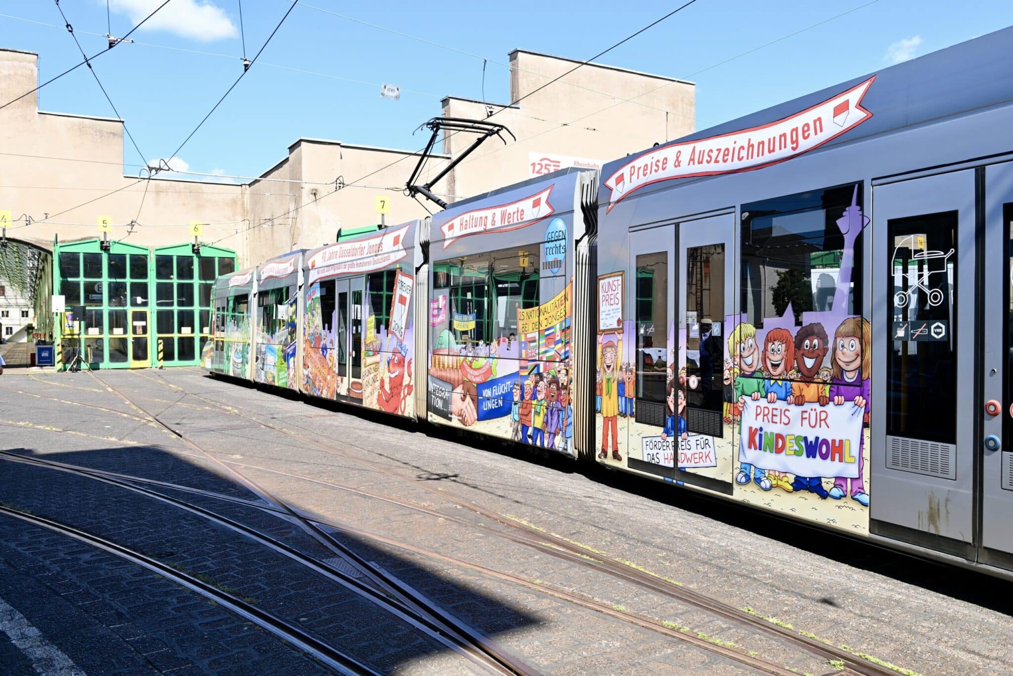 So sind auf der Bahn nicht nur die Projekte und Aktionen, die Geschichte des Vereins oder Brunnen und Denkmäler dargestellt, sondern auch die Haltung und Werte wie Heimat, Integration und Tradition. Damit ist das Lebensgefühl eingefangen, das Düsseldorf ausmacht – und zu dem die Rheinbahn genau wie die Düsseldorfer Jonges ihren wichtigen Part beitragen.