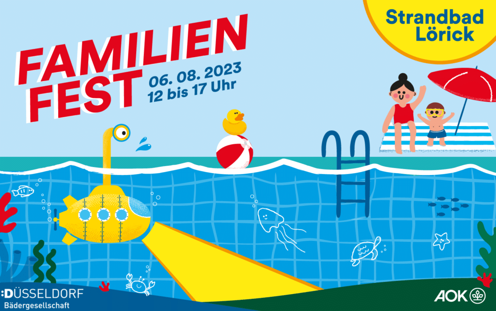 Am Sonntag, den 6. August 2023 veranstaltet die Bädergesellschaft Düsseldorf in Kooperation mit der AOK Rheinland/Hamburg – die Gesundheitskasse, Regionaldirektion Düsseldorf/Kreis Mettmann erstmalig ein groß angelegtes Familienfest, unter dem Motto Unterwasserwelten. In der Zeit zwischen 12 und 17 Uhr wird ein umfangreiches Programm geboten.