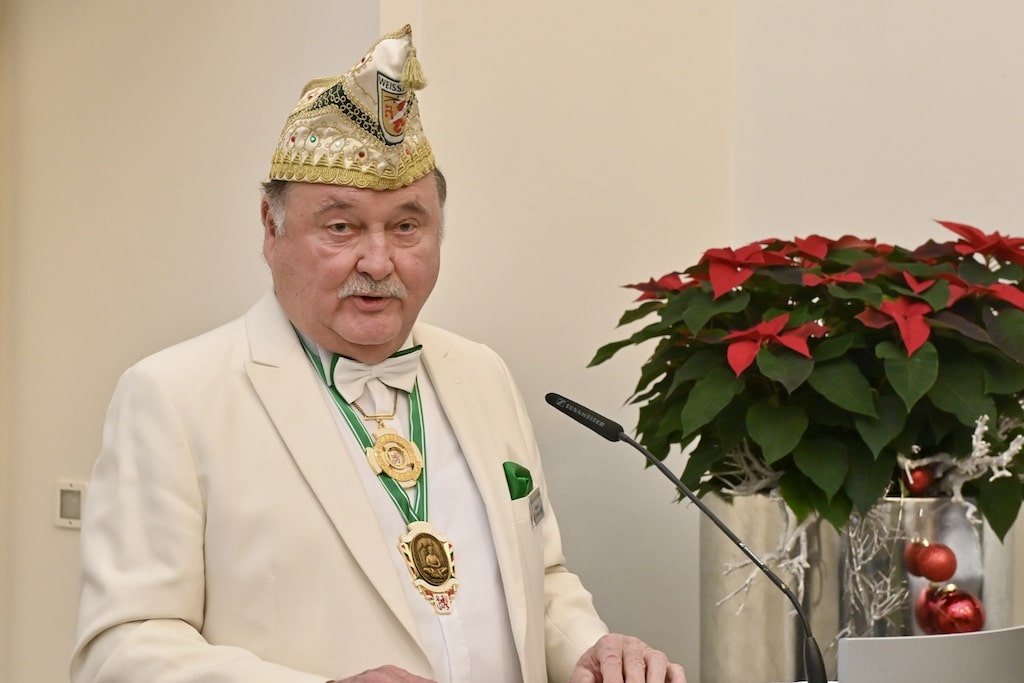 Die Verleihung fand im festlich dekorierten Jan-Wellem-Saal statt, wo Oberbürgermeister Stephan Keller die Anwesenden begrüßte und seine Freude über die diesjährige Ehrung zum Ausdruck brachte. Hans-Jörg Kohl, der zweite Vorsitzende der Weissfräcke, bedankte sich beim Oberbürgermeister und bat den Senatssprecher Hubert G. Schneider, die Verleihung vorzunehmen.