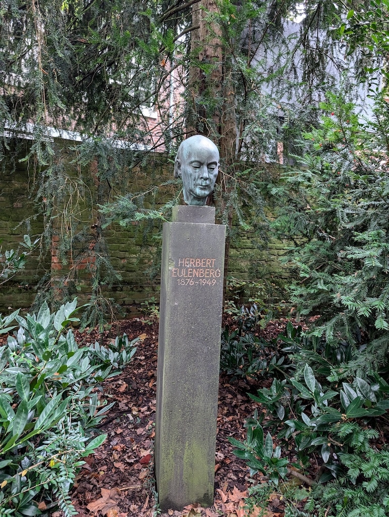 Bleibt noch Herbert Eulenberg. Geboren 1876, gestorben am 4. September 1949 in Kaiserswerth. Max Herbert Eulenberg, so sein vollständiger Name, war kämpferischer Humanist und gründete mit zwei Mitstreitern das Düsseldorfer Schauspielhaus. An seiner Seite standen Gustav Lindemann und Louise Dumont.