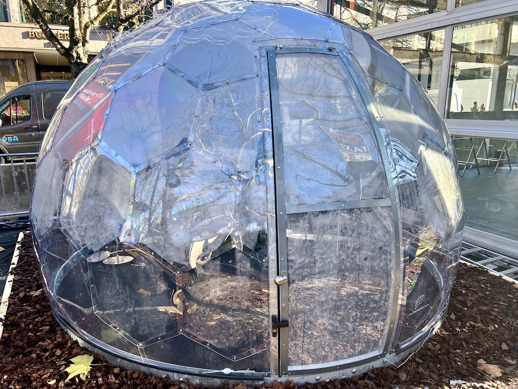 Der neue Glaspavillon, der nun erstmalig als Zentrum auf dem neu erstrahlten Kö-Weihnachtsmarkt aufgestellt wurde, soll als Blaupause für die Zukunft der Kö dienen. Wienen: „Wir brauchen eine neue Außengastronomie, die wir hier sehr vermissen.“ Glasklar: Dieser neue Pavillon besitzt entsprechendes Potenzial. Verglast nach allen Seiten kann der Besucher dem Treiben vor den Geschäften der Nobelmarken und dem Kö-Graben entspannt folgen.