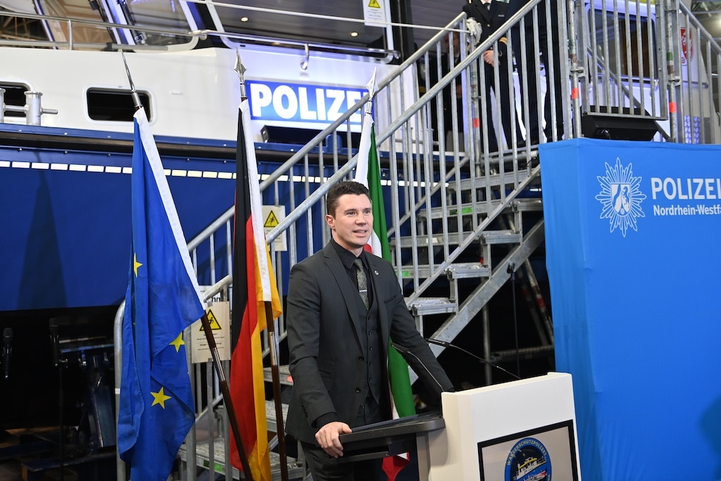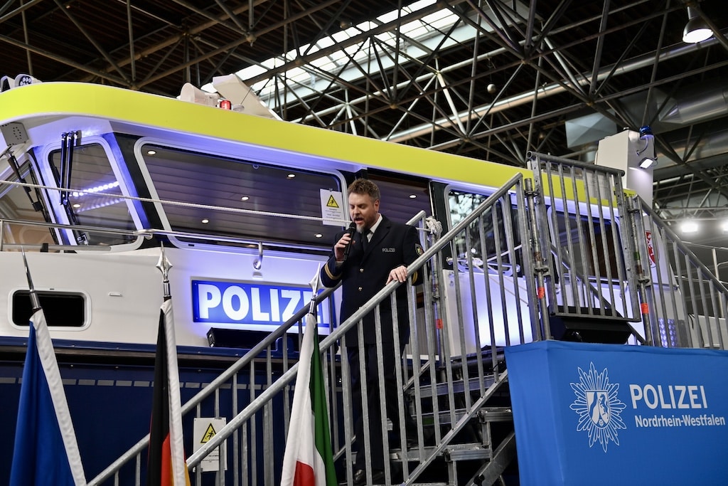 Der Festakt fand am Nachmittag in Halle 14 der Düsseldorfer Messe statt. Begrüßt wurden die Gäste aus Politik, Polizei und Medien durch den Leiter der Direktion Wasserschutzpolizei, Markus Gietenbruch. Auch Vertreter der Messe Düsseldorf nahmen an der Zeremonie teil, darunter Wolfram N. Diener, Vorsitzender der Geschäftsführung der Messe Düsseldorf, sowie boot-Direktor Petros Michelidakis. Sie hoben die Bedeutung der „boot“ als internationale Plattform für Sicherheit, Innovation und maritime Infrastruktur hervor.